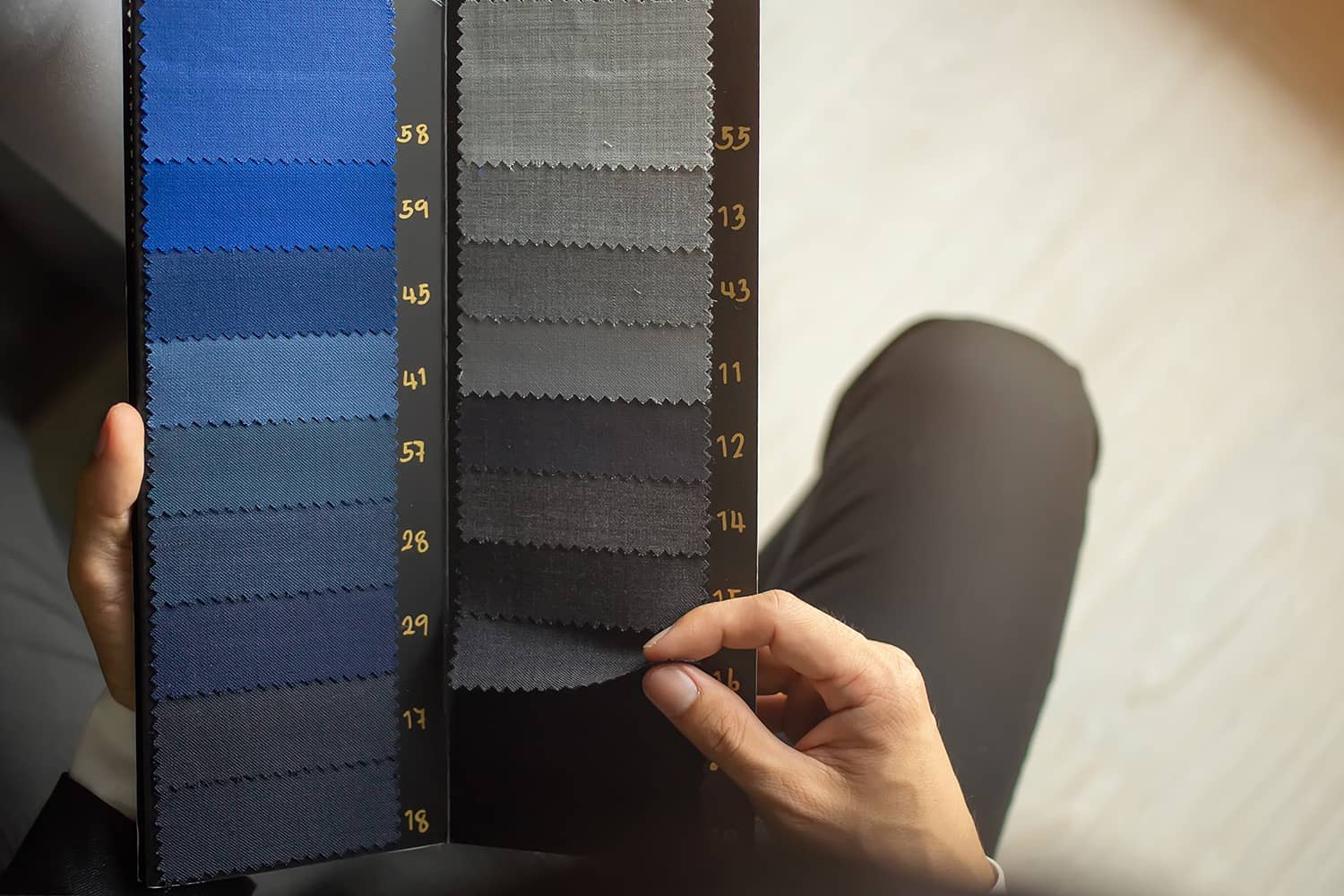 Immergiti nella selezione di tessuti biellesi d'eccellenza, la base per un capo che esprime lusso e qualità.